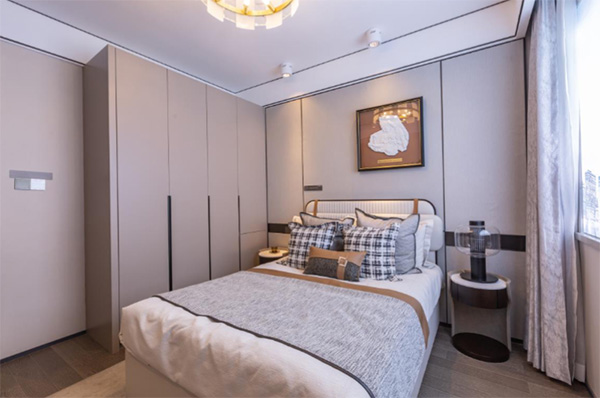 主卧空间以统一色调弱化空间分割感,模块化收纳系统实现衣物、寝具的精准分区。静音缓冲铰链与阻尼抽屉,在开合间守护私密空间的宁静优雅。